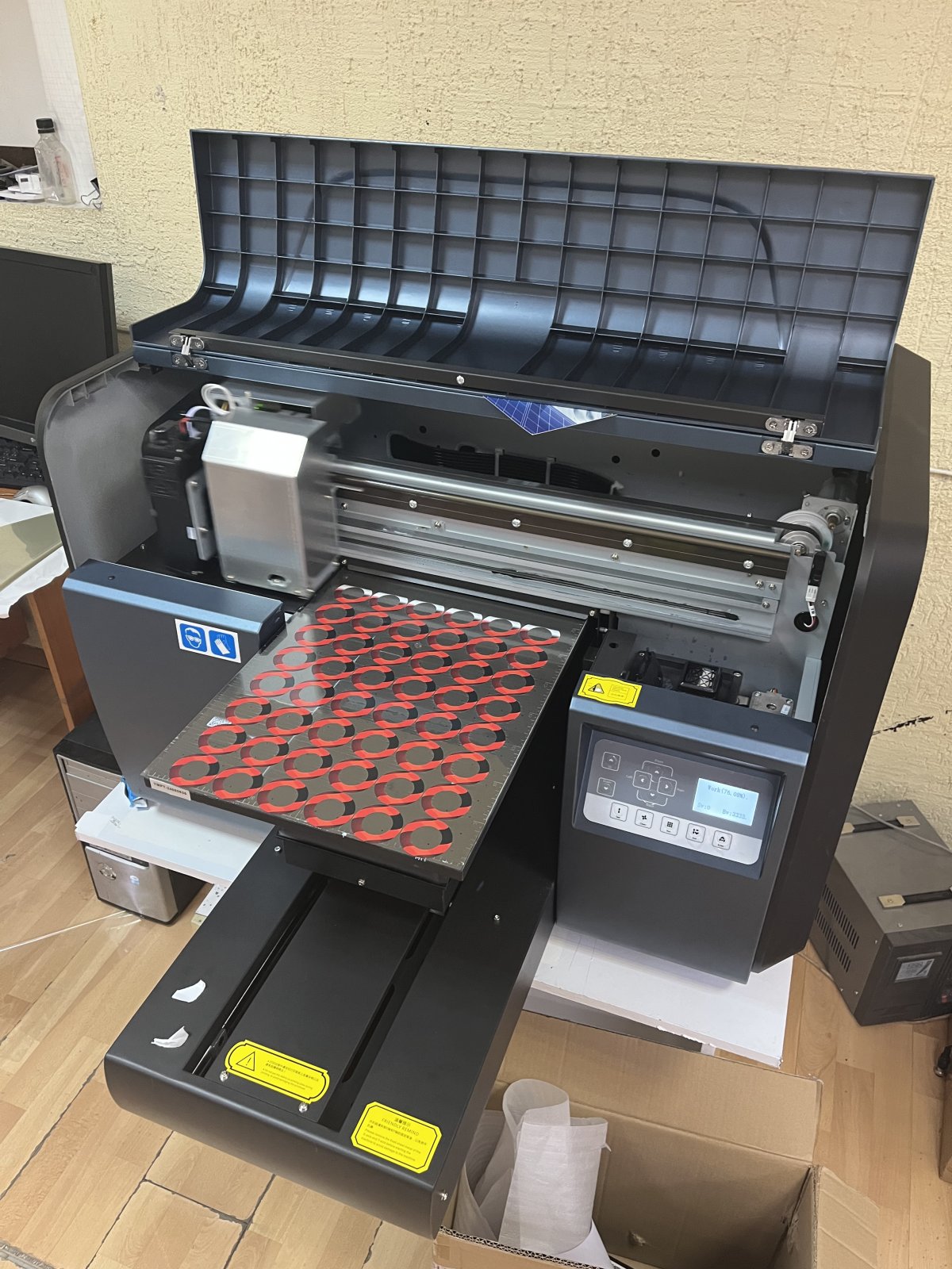 Мы купили уже третий УФ-принтер который может печатать наклейки полноцвет +белая подложка + лак. Такую наклейку легко приклеить к любому сувениру, даже неправильной формы: термос, брелок, камень, тарелка, кружки любой формы, объемный логотип на шапку календаря, вывески, наклейки на авто... Можно печатать напрямую на плоские материалы: ежедневники, вывески на кабинеты со шрифтом Брайля (для слепых) Шапки календарей, любые плоские сувениры. Наклейка или печать держится очень прочно и не боятся уличных погодных условий, не выгорают на солнце более 5 лет. Тестировались при наклейке на пол возле лифта с большой проходимостью, несколько месяцев наклейка выдерживала людской поток.